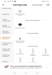 - Chọn “Add device”, “Security & Sensor”, “Lock (Wifi)”, nhập mật mã wifi điện thoại đang kết